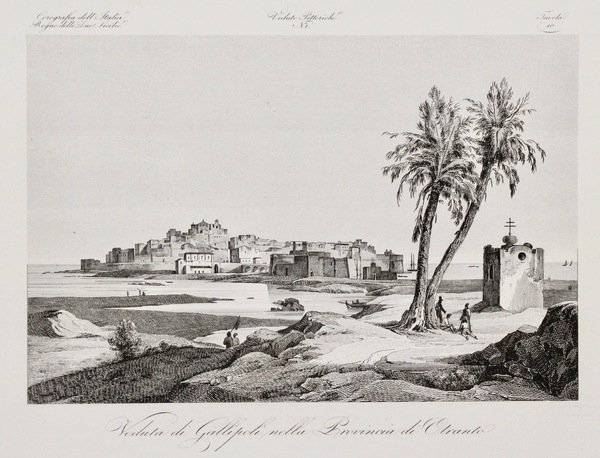 Incisione in rame di mm 190x290 (l'immagine). Attilio Zuccagni-Orlandini (1784-1872) fu un cartografo e geografo italiano. La sua opera principale è senza dubbio la Corografia fisica, storica e statistica dell'Italia e delle sue isole, cui l'incisione appartiene. La Corografia si compone di dodici tomi (senza contare i vari supplementi), stampati tra il 1833 e il 1845, ed è corredata da un atlante in due volumi e da numerose mappe geografiche e topografiche, nonché da tavole illustrative. Bell'esemplare, con qualche fioritura all'estremità del margine superiore.<BR>
