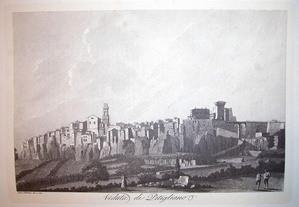 VEDUTA DI PITIGLIANO. Riproduzione tratta da "Viaggio pittorico della Toscana" di Jacopo e Antonio Terreni.