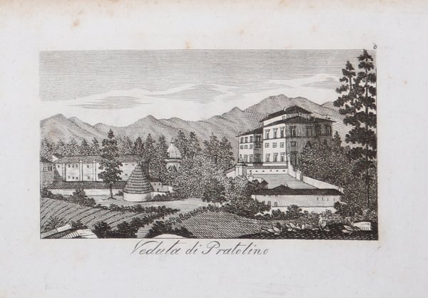 Veduta tratta dal celebre "Il viaggio pittorico della Toscana", stampato a Firenze, per Giovanni Marenigh, 1817.Celebre opera che costituisce uno straordinario affresco iconografico dell'intera Toscana. L'abate Francesco Fontani (Firenze, 1748-1818), dotto erudito, dopo gli studi compiuti nel seminario del Collegio Eugeniano si trasferì a Roma ove insegnò eloquenza nel Collegio Bandinelli. Si dedicò agli studi artistici e archeologici e, rientrato a Firenze, divenne Bibliotecario alla Riccardiana, occupandosi anche della Accademia della Crusca. Fu parroco nella chiesa di Santa Lucia dei Magnoli. "Il viaggio pittorico della Toscana" costuisce la sua opera più rinomata.Riproducendo fedelmente le tavole incise dai fratelli Terreni durante il loro viaggio del 1801,fu pubblicata la prima volta tra il 1801 e il 1803 per i tipi del Tofani a Firenze e in seguito, in questa versione ridotta nel formato, da Giovanni Marenigh nel 1817-1818 e nel 1822. Veduta tratta dal celebre "Il viaggio pittorico della Toscana", stampato a Firenze, per Giovanni Marenigh, 1817.Celebre opera che costituisce uno straordinario affresco iconografico dell'intera Toscana. L'abate Francesco Fontani (Firenze, 1748-1818), dotto erudito, dopo gli studi compiuti nel seminario del Collegio Eugeniano si trasferì a Roma ove insegnò eloquenza nel Collegio Bandinelli. Si dedicò agli studi artistici e archeologici e, rientrato a Firenze, divenne Bibliotecario alla Riccardiana, occupandosi anche della Accademia della Crusca. Fu parroco nella chiesa di Santa Lucia dei Magnoli. "Il viaggio pittorico della Toscana" costuisce la sua opera più rinomata.Riproducendo fedelmente le tavole incise dai fratelli Terreni durante il loro viaggio del 1801,fu pubblicata la prima volta tra il 1801 e il 1803 per i tipi del Tofani a Firenze e in seguito, in questa versione ridotta nel formato, da Giovanni Marenigh nel 1817-1818 e nel 1822. Cfr. Fossati Bellani, II, 3377; Lozzi, 5462, Bigazzi, 1341 e 1342, cita le edizioni 1801-1803 e 1817.