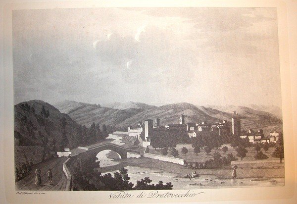 VEDUTA DI PRATOVECCHIO. Riproduzione tratta da "Viaggio pittorico della Toscana" di Jacopo e Antonio Terreni.