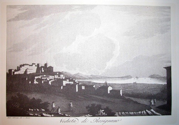 VEDUTA DI ROSIGNANO PRESSO LIVORNO. Riproduzione tratta da "Viaggio pittorico della Toscana" di Jacopo e Antonio Terreni.