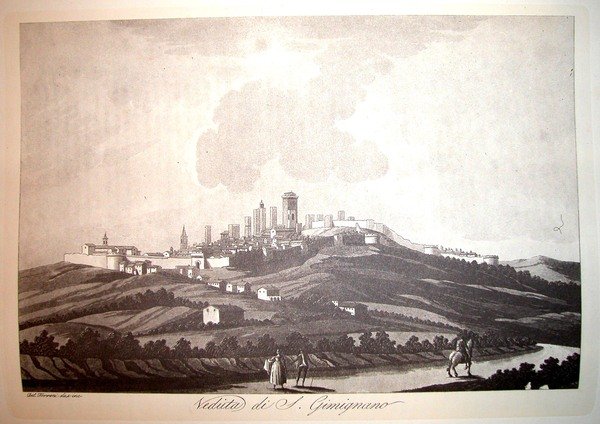 VEDUTA DI S.GIMIGNANO. Riproduzione tratta da "Viaggio pittorico della Toscana" di Jacopo e Antonio Terreni.