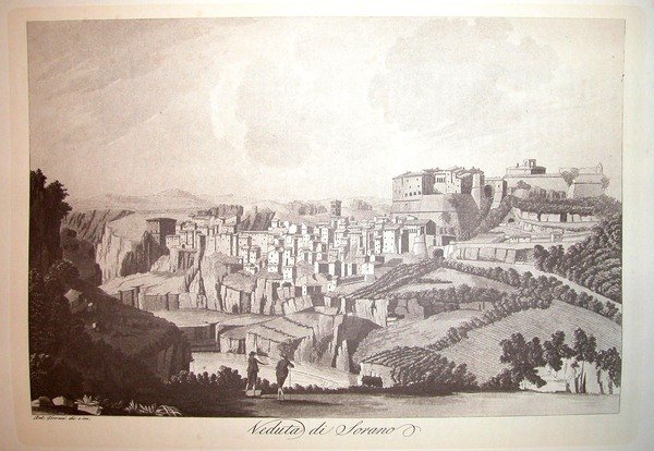 VEDUTA DI SORANO. Riproduzione tratta da "Viaggio pittorico della Toscana" di Jacopo e Antonio Terreni.