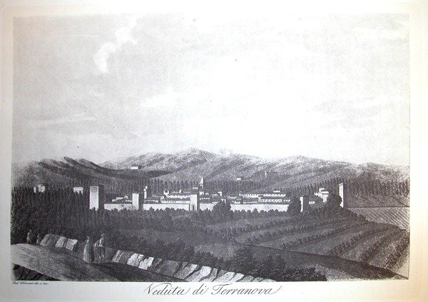 VEDUTA DI TERRANUOVA BRACCIOLINI. Riproduzione tratta da "Viaggio pittorico della Toscana" di Jacopo e Antonio Terreni.
