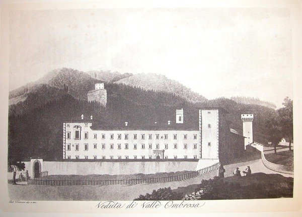 VEDUTA DI VALLOMBROSA. Riproduzione tratta da "Viaggio pittorico della Toscana" di Jacopo e Antonio Terreni.