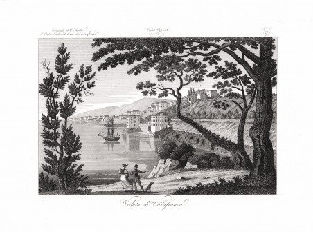Veduta pubblicata nel noto ' Atlante illustrativo, ossia Raccolta dei principali monumenti italiani antichi, del Medio evo e moderni, e di alcune vedute pittoriche… ' di Attilio Zuccagni-Orlandini, edito in 3 tomi nel 1845 a Firenze, per servire di corredo alla ' Corografia fisica, storica e statistica dell'Italia…, opera in 12 volumi, pubblicati dal 1837 al 1845, corredata - oltre che dall'Atlante illustrativo ' sopra descritto - anche da un ' Atlante geografico degli Stati italiani, ' in due tomi. Attilio Zuccagni Orlandini (1784-1872) nacque a Fiesole con il nome di Giuseppe Orlandini. In seguito all’adozione da parte del facoltoso zio materno Attilio Zuccagni (1754-1807), botanico e georgofilo, assunse il nome di Attilio Zuccagni Orlandini. La sua più importante opera è la relazione geografico-cartografica di tutti gli Stati preunitari italiani, la grandiosa ' Corografia fisica, storica e statistica dell’Italia e delle sue Isole ' (Firenze 1835-1845), in dodici volumi per diciannove tomi, con un volume introduttivo sull’intera penisola italiana. L’opera costituì la summa delle centinaia di opere geografiche generali, regionali e locali allora disponibili e presentava, per ogni Stato preunitario, la trattazione fisica, storica, topografica e un inquadramento statistico. Nel 1844-45, la ' Corografia ' fu arricchita con cinque volumi di cartografie, vedute e altre illustrazioni di luoghi e monumenti: ' Atlante geografico degli Stati italiani delineato sopra le migliori e più moderne mappe ' (due volumi con 144 tavole inclusa la grande carta della penisola in 15 fogli) e ' Atlante illustrativo ossia raccolta dei principali monumenti italiani antichi, del medio evo e moderni e di alcune vedute pittoriche ' (tre volumi con 413 illustrazioni, stampate su 269 fogli). Le tavole furono incise, sempre a Firenze, in due apposite officine, da quattro valenti artisti lombardi (Vittorio Angeli, Giacinto Maina, Pietro Manzoni e Giuseppe Pozzi). Soprattutto il primo dei due atlanti rappresenta, ancora oggi, una pietra miliare nella storia della cartografia e dell’iconografia geografica italiana. Fu veramente ‘un’ardua impresa’, dal momento che spesso mancavano ancora (come, ad esempio, per il ' Ducato di Lucca ' e lo ' Stato Pontificio) prodotti cartografici compiutamente geometrici. I due prodotti furono presentati ai Georgofili nel 1843 e nel 1844, insieme alla mappa della Repubblica di San Marino. L’opera si rivelò oltremodo costosa e non ottenne il successo commerciale sperato, ma servì da base per tante altre iniziative editoriali successive che vi attinsero, talora senza neppure rispettarne i diritti d’autore. ' Incisione su rame all'acquaforte, in ottimo stato di conservazione. ' Bibliografia: Anna Guarducci - ' Dizionario Biografico degli Italiani ' - Volume 100 (2020). View published in the famous ' Atlante illustrativo, ossia Raccolta dei principali monumenti italiani antichi, del Medio evo e moderni, e di alcune vedute pittoriche. di Attilio Zuccagni-Orlandini, published in 3 volumes in Florence, 1845, to accompany the ' Corografia fisica, storica e statistica dell'Italia., a work in 12 volumes, published from 1837 to 1845, accompanied - in addition to the Atlante illustrativo described above - also by a ' Atlante geografico degli Stati italiani, in two volumes. Attilio Zuccagni Orlandini (1784-1872) was born in Fiesole under the name of Giuseppe Orlandini. Following adoption by his wealthy maternal uncle Attilio Zuccagni (1754-1807), a botanist and georgofile, he took the name Attilio Zuccagni Orlandini. His most important work is the geographic-cartographic report of all the pre-unification Italian states, the great ' Corografia fisica, storica e statistica dell'Italia e delle sue Isole ' (Florence 1835-1845), in twelve volumes for nineteen tomes, with an introductory volume on the entire Italian peninsula. The work constituted the sum of hundreds of general, regional and local geographic works then available and presented, for each pre-unification state, the physical, historical, topographical and statistical framework. In 1844-45, the ' Corografia ' was enriched with five volumes of maps, views and other illustrations of places and monuments: ' Atlante geografico degli Stati italiani delineato sopra le migliori e più moderne mappe ' (two volumes with 144 plates including the large map of the peninsula in 15 sheets) and ' Atlante illustrativo ossia raccolta dei principali monumenti italiani antichi, del medio evo e moderni e di alcune vedute pittoriche ' (three volumes with 413 illustrations, printed on 269 sheets). The plates were engraved, again in Florence, in two special workshops, by four talented Lombard artists (Vittorio Angeli, Giacinto Maina, Pietro Manzoni and Giuseppe Pozzi). Especially the first of the two atlases represents, even today, a milestone in the history of cartography and Italian geographic iconography. It was truly 'an arduous undertaking', since cartographic products were often still lacking (as, for example, for the Duchy of Lucca and the Papal States) fully geometric. The two products were presented to the Georgofili in 1843 and 1844, along with the map of the Republic of San Marino. The work proved to be very expensive and did not achieve the commercial success hoped for, but served as a basis for many other subsequent publishing initiatives that drew on it, sometimes without even respecting the copyright. ' Etching, in excellent condition. ' Literature: Anna Guarducci - ' Dizionario Biografico degli Italiani ' - Volume 100 (2020). Cfr.