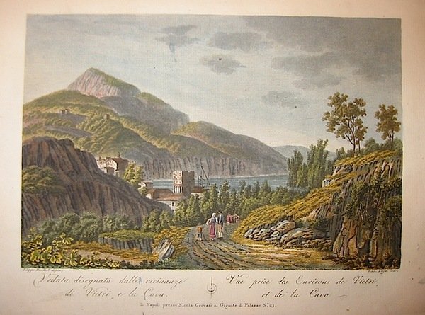 Incisione originale su rame (cm. 30x22 più ampi margini) da un disegno di J.P. Hackert. Splendida coloritura coeva all’acquarello. Ottimo esemplare. Non comune.