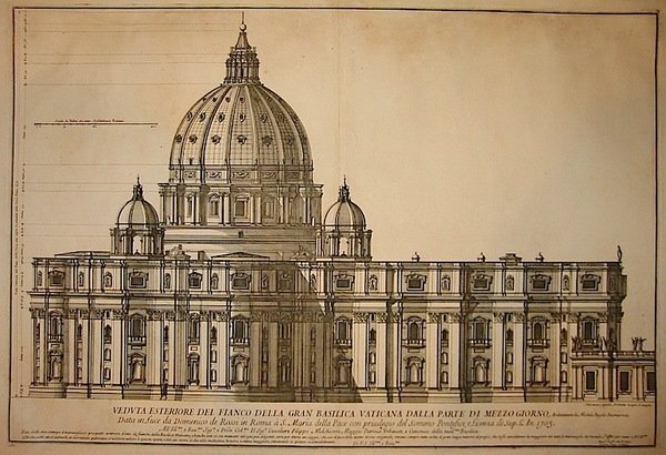 Veduta esteriore del fianco della Gran Basilica Vaticana dalla parte di mezzo giorno, architettura di Michel Angelo Buonarroti
