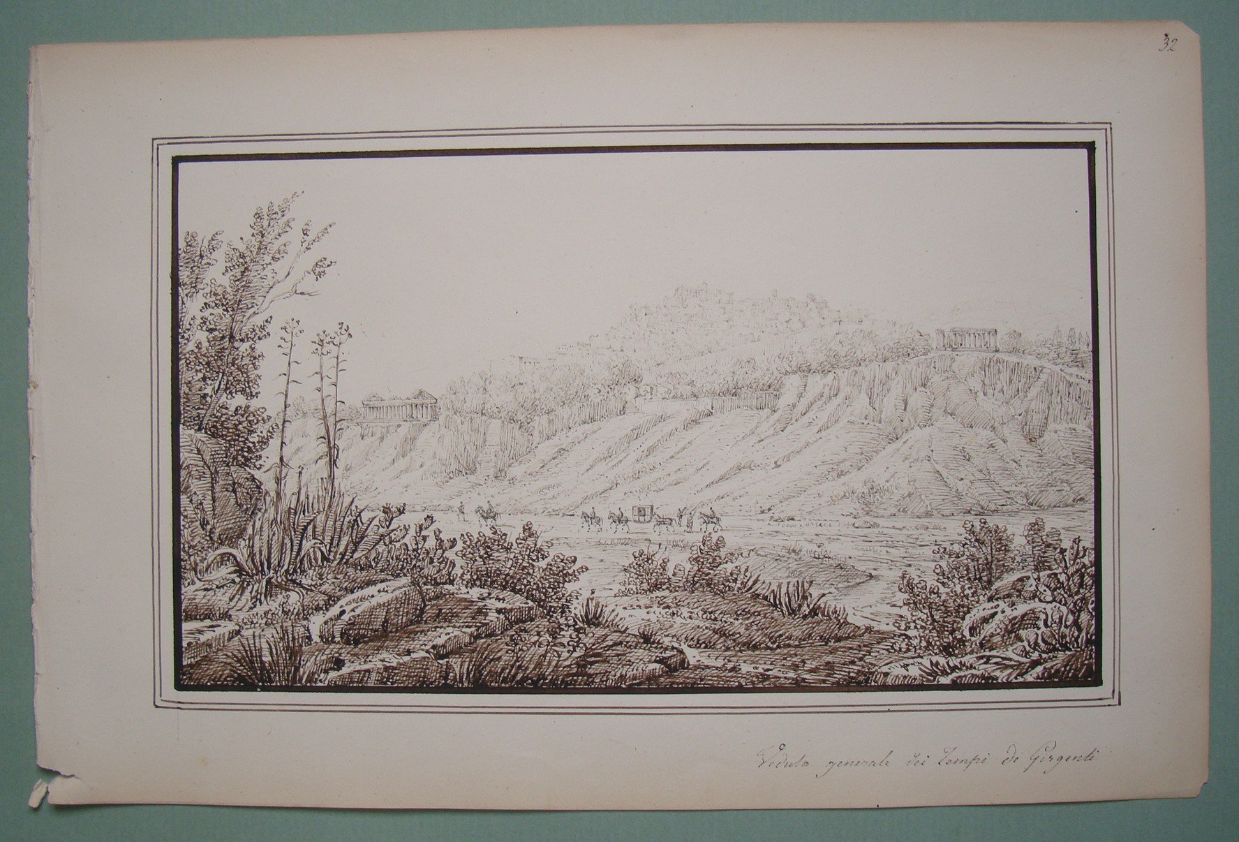 Disegno. Veduta generale dei Tempi di Girgenti.