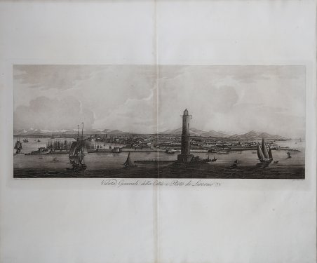 Veduta tratta dal celebre "Viaggio Pittorico della Toscana" di Francesco Fontani. L'opera fu per la prima volta pubblicato a Firenze dall’editore Giuseppe Tofani, tra il 1801 ed il 1803. L’opera è considerata uno dei più importanti e suggestivi libri figurati sulla Toscana, sia per la qualità grafica delle incisioni, sia per la gran quantità delle località ritratte. Nei tre volumi in folio che compongono questa ponderosa pubblicazione sono infatti inserite 209 tavole, finemente incise all’acquatinta dai fratelli Antonio e Jacopo Terreni (attivi a Livorno e Firenze tra la fine del diciottesimo e l’inizio del diciannovesimo secolo), da Giovanni Pera ed altri. Nove di queste tavole sono stampate a doppia pagina, raffigurando la carta della regione e una pianta e la veduta delle città principali: Firenze, Siena, Pisa, Livorno. Tutte le altre sono stampate a foglio singolo e raffigurano architetture o paesaggi relativi sia alle principali località che ai centri minori della Toscana. Notevole fu il successo del Viaggio Pittorico della Toscana, anche per il seguito di riproduzioni e di rifacimenti cui fu sottoposto, in Italia e all’estero, gran parte del suo corredo grafico. Moltissimi altri libri furono infatti illustrati in seguito con incisioni derivanti dalla grafica dei fratelli Terreni, mentre una seconda edizione dell’opera venne alla luce, in formato ridotto, nel 1817/18. Incisione in rame all’acquatinta, stampata ad inchiostro bruno su carta vergata coeva, ampli margini, lievissime bruniture, nel complesso in ottimo stato di conservazione. Bibliografia: Cremonini pp. 145/148, 190. View taken from the famous "Viaggio Pittorico della Toscana" by Francesco Fontani. The work was published for the first time in Florence by the publisher Giuseppe Tofani, between 1801 and 1803. Cfr.