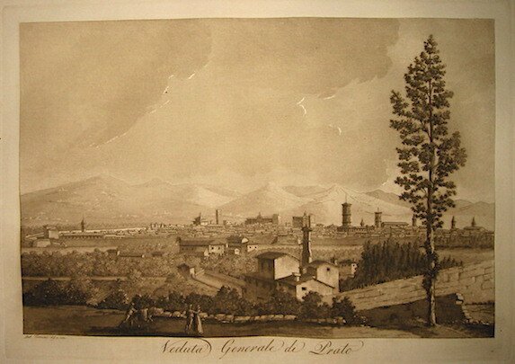 Acquatinta originale (cm. 37x26 più ampi margini bianchi) dal ‘Viaggio pittorico della Toscana’ dell’abate Francesco Fontani. Esemplare in ottimo stato di conservazione.
