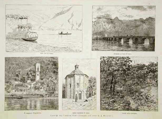 Vedute del Lago di Como - Sulle rive di Campo - Resegone e Ponte di Lecco - Il campanile d'Ospedaletto - Antico battistero di Lenno - Strada sulla montagna