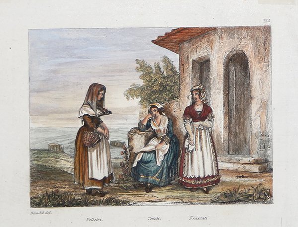 Veduta tratta dal celebre L'Italie, la Sicile, les Iles Éoliennes, l'Ile d'Elbe, la Sardaigne, Malte, l'Ile de Calypso etc. D'après les inspirations, les recherches et les travaux de M. M. le Vicomte de Chateaubriand, De Lamartine, Raoul-Rochette, le Comte de Forbin, Piranesi, Mazzara, et de Napoléon, Denon, Saint-Non, Lord Byron, Goethe, Visconti, Cicognara, Lanzi, de Bonstetten, Swinburne, etc. Sites, Monumens, Scènes et Costumes, d'après M.me Haudebourt-Lescot, MM. Horace-Vernet, Granet, Isabey, Ciceri, Mazzara, le Major Light, le Cap. Batty, Cooke, Gell et Gandy, Pinelli, Ferrari, Zucoli, et beaucoup d'autres artistes italiens. Recueillis et publiés par Audot Père, Membre de la Société de Géographie, edito a Parigi tra il 1834 ed il 1837 e ristampato a Torino [Giuseppe Pomba e Ca, 1834-1838]. L'opera, in cinque volumi, raccoglie scritti di autori vari, curati da Audot, ed è riccamente illustrata da 324 incisioni su acciaio fuori testo, molte delle quali con accostamento multiplo, per un totale di 473 tavole. Fu notoriamente mastodontico il lavoro cui si sottopose Louis Eustache Audot (1783-1870). ' Finemente colorata a mano. Plate taken from the famous L'Italie, la Sicile, les Iles Éoliennes, l'Ile d'Elbe, la Sardaigne, Malte, l'Ile de Calypso etc. D'après les inspirations, les recherches et les travaux de M. M. le Vicomte de Chateaubriand, De Lamartine, Raoul-Rochette, le Comte de Forbin, Piranesi, Mazzara, et de Napoléon, Denon, Saint-Non, Lord Byron, Goethe, Visconti, Cicognara, Lanzi, de Bonstetten, Swinburne, etc. Sites, Monumens, Scènes et Costumes, d'après M.me Haudebourt-Lescot, MM. Horace-Vernet, Granet, Isabey, Ciceri, Mazzara, le Major Light, le Capt. Batty, Cooke, Gell et Gandy, Pinelli, Ferrari, Zucoli, et beaucoup d'autres artistes italiens. Recueillis et publiés par Audot Père, Membre de la Société de Géographie, published in Paris between 1834 and 1837 and reprinted in Turin [Giuseppe Pomba e Ca, 1834-1838]. The work, in five volumes, collects the writings of various authors, edited by Audot, and is richly illustrated with 324 engravings on steel outside the text, many of them with multiple combinations, for a total of 473 tables. Louis Eustache Audot (1783-1870) was a notoriously mammoth task. ' Finely hand-colored. Cfr. Cremonini pag.201/202, 121,122; Olscki, "Choix", 1108, "Ouvrage monumental qui conservera toujours une grande valeur ". Menichelli, 846. Fossati-Bellani, I, 522.