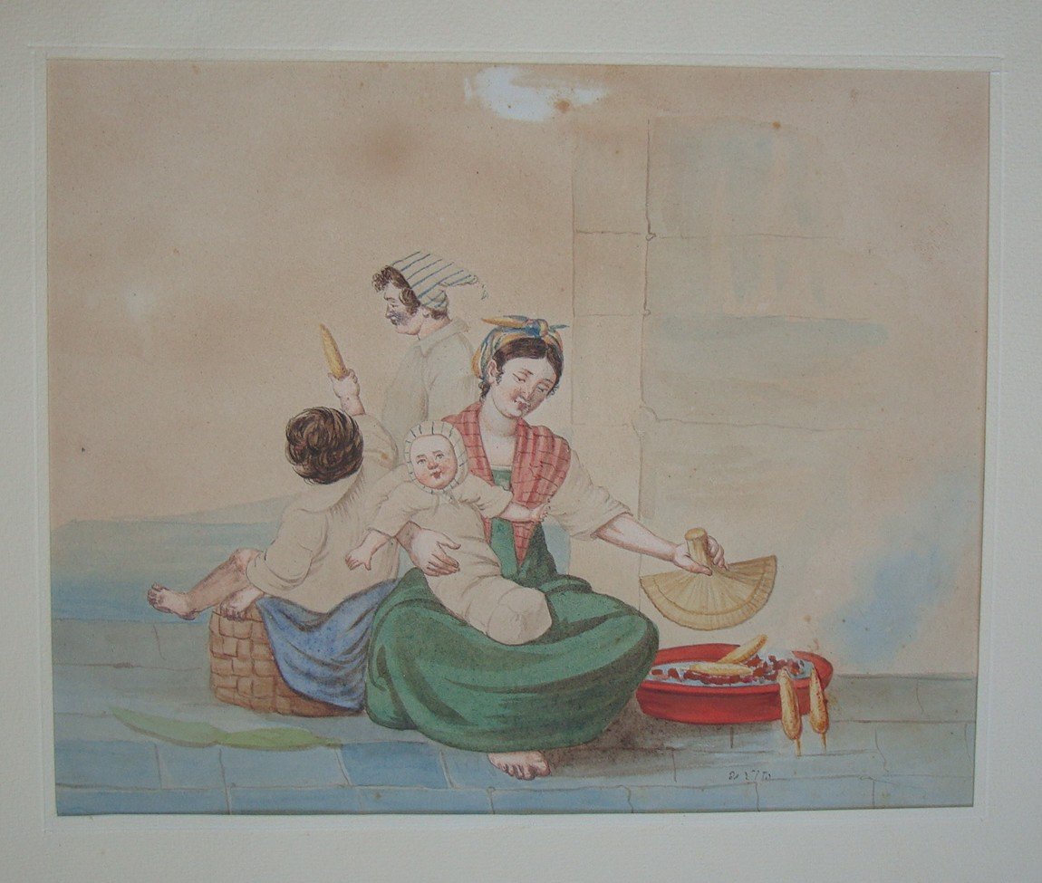 DE VITO. Venditrice di Pollanchelle. 1830 ca. Cm.18x23. Acquarello originale.