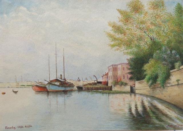 Firmato e datato in basso a destra “Mans Lutz”, 1913. Acquarello, cm 20 x 29 (il foglio), titolo in basso a sinistra. Scorcio della laguna con imbarcazioni. Di ottima mano, in piacevole coloritura e in ottimo stato di conservazione.