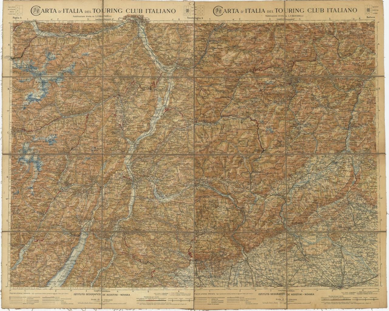 Carta geografica, antica ed originale, riguardante il territorio da Cavalese a Bassano e da Feltre a Trento. Autore: Istituto Geografico De Agostini. Luogo: Veneto - Trentino. Tecnica: Litografia. Dimensioni: 520x650. La carta pubblicata dal Touring Club Italiano dieretta da L. V. Bertarelli, si presenta in scala 1:250.000 ed è editorialmente telata a stacchi. Autore: Istituto Geografico De Agostini. Luogo: Veneto - Trentino. Tecnica: Litografia. Dimensioni: 520x650 mm