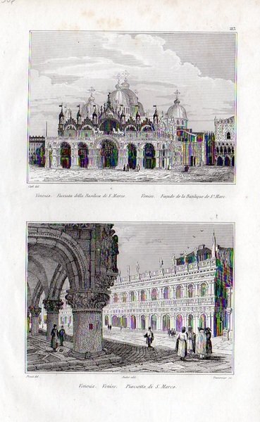 VENEZIA - Due vedute su unica tavola: "Facciata della Basilica di S. Marco" - "Piazzetta di S. Marco"