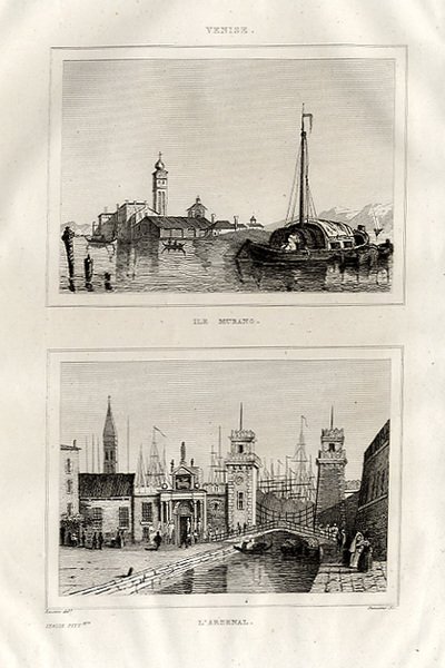 VENEZIA - Due vedute su unica tavola: "Ile Murano" - "L'Arsenal"