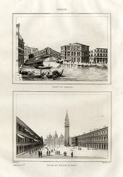 VENEZIA - Due vedute su unica tavola: "Pont du Rialto" - "Place et Eglise S.t Marc"