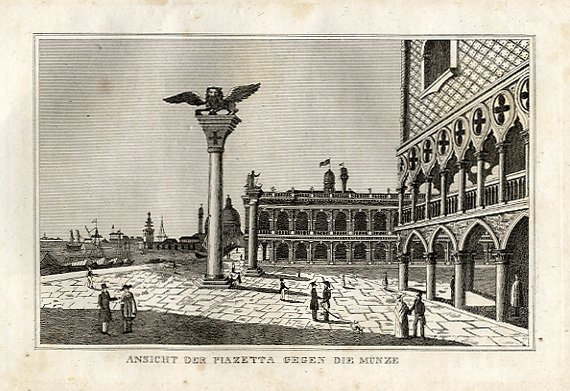 VENEZIA - "Mansicht der Piazetta gegen die munze" bella veduta della "Piazzetta" con barche e mare sulla sinistra e un angolo di Palazzo Ducale a destra.