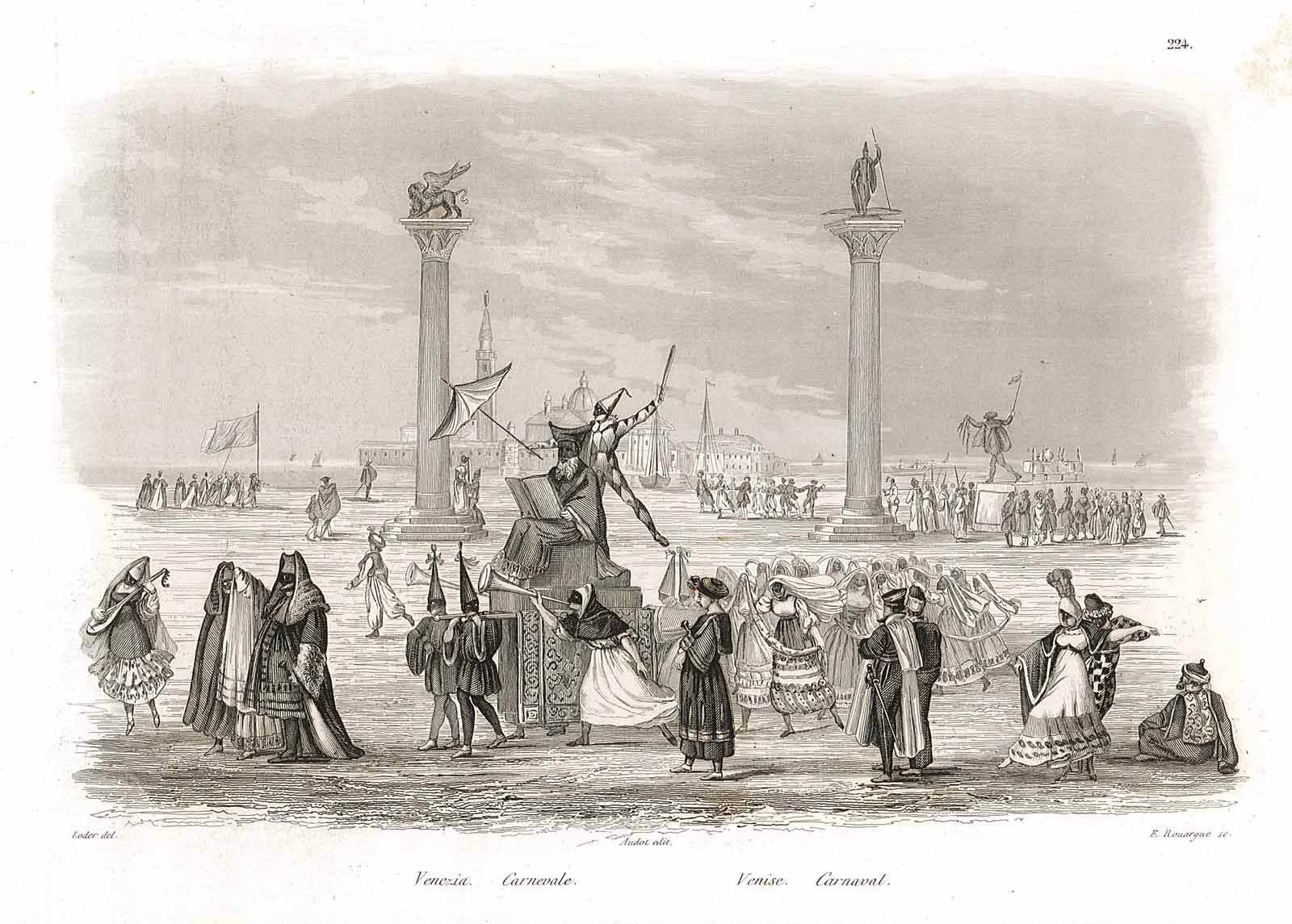 Stampa antica ed originale con raffigurazione del carnevale di Venezia
