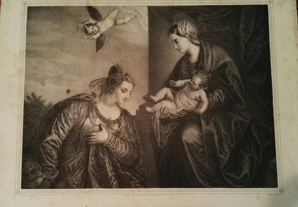 Bellissima incisione in acciaio. Stato discreto (presenza di gore sulla stampa, come da foto). Tratta da un'incisione di Paolo Veronese. Dimensioni dell'incisione: 62 x 46 cm.