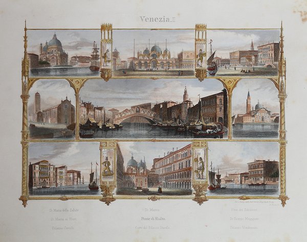 Veduta tratta dal celebre "Letture di Famiglia Opera Illustrata con incisioni in acciaio ceh si pubblica dalla sezione Letterario Artistica del Lloyd Austriaco" edita a Trieste dal 1852 al 1862. Il Lloyd Triestino è la più antica società di navigazione italiana ed una delle più antiche del mondo. Fu fondato nel 1836 con il nome di Lloyd austriaco di assicurazione, essendo Trieste era ancora sotto l’Impero Austro-Ungarico. ' I primi passi della Compagnia vennero accompagnati dalla pubblicazione del Giornale del Lloyd che riportava notizie di carattere marittimo e commerciale. Questa sezione disponeva di una propria moderna tipografia, che ha curato la pubblicazione fino alla sua cessazione avvenuta nel 1931. Il 21 giugno 1849 il Lloyd istituì ufficialmente una “Sezione letterario-artistica” contribuendo notevolmente alla diffusione e allo sviluppo della cultura italiana a Trieste e in Istria. Tra le iniziative di maggior rilievo editoriale ricordiamo per le pubblicazioni tecniche l’Annuario Marittimo e la Rivista Marittima, per quelle artistico-letterarie le Letture di famiglia, una delle prime se non la prima grande rivista illustrata italiana che annoverò fra i collaboratori: Aleardi, i due Cantù, Maffei, Rosmini, Carcano. Incisione in rame, colorata a mano, in ottimo stato di conservazione. Veduta tratta dal celebre "Letture di Famiglia Opera Illustrata con incisioni in acciaio ceh si pubblica dalla sezione Letterario Artistica del Lloyd Austriaco" edita a Trieste dal 1852 al 1862. Lloyd Triestino is the oldest Italian shipping company and one of the oldest in the world. It was founded in 1836 under the name Austrian Insurance Lloyd, as Trieste was still under the Austro-Hungarian Empire. ' The Company's first steps were accompanied by the publication of the Lloyd's Journal, which reported maritime and commercial news. This section had its own modern printing press, which edited the publication until it was discontinued in 1931. On June 21, 1849, Lloyd officially established a "Literary-Artistic Section," contributing greatly to the spread and development of Italian culture in Trieste and Istria. Among the most important editorial initiatives we recall for technical publications the Annuario Marittimo and the Rivista Marittima, for artistic-literary ones the Letture di famiglia, one of the first if not the first great Italian illustrated magazine that counted among its contributors: Aleardi, the two Cantùs, Maffei, Rosmini, Carcano. Incisione in rame, colorata a mano, in ottimo stato di conservazione. Cfr.