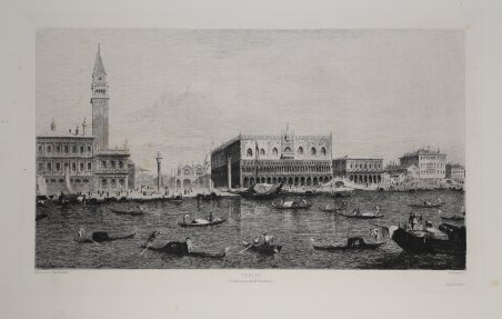 Veduta incisa da Léon Gaucherel dal dipinto di Francesco Guardi. Opera tratta da L'Art. revue hebdomadaire illustrée, un settimanale illustrato, pubblicato per la prima volta a Parigi il 3 gennaio 1875, sotto la direzione di Eugène Véron, in associazione con Librairie de l'Art, situata in 3 rue de la Chaussée d'Antin (uno stabilimento gestito di Hippolyte Heymann, nominato direttore del periodico). ' Acquaforte, in perfetto stato di conservazione. View engraved by Léon Gaucherel from the painting by Francesco Guardi. Plate taken from L'Art. revue hebdomadaire illustrée, an illustrated weekly published for the first time in Paris on January 3, 1875, under the direction of Eugène Véron, in association with Librairie de l'Art, located at 3 rue de la Chaussée d'Antin (an establishment run by Hippolyte Heymann, who was appointed editor of the periodical). ' Etching, in perfect condition. Cfr.