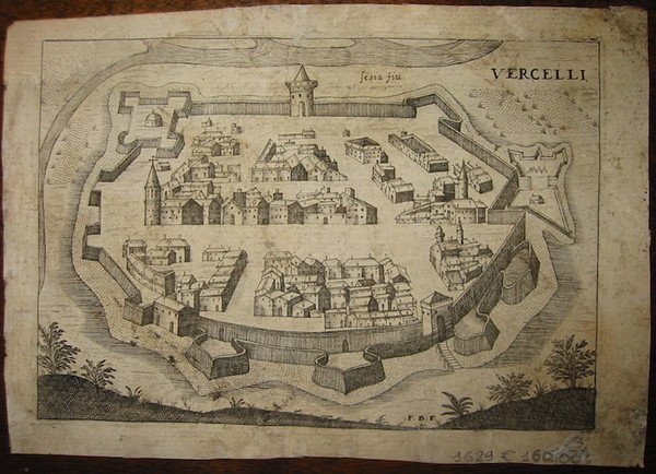 Incisione originale su rame (cm. 17,5x12 più margini) pubblicata dal figlio Francesco nel ‘Theatro delle città d’Italia’. Alcuni restauri e carta uniformemente brunita. Non comune.