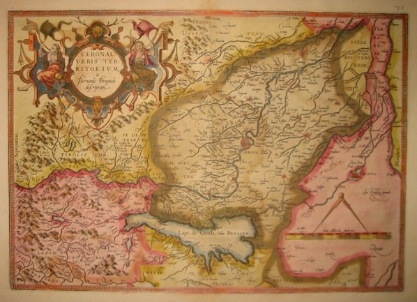 Incisione originale su rame (cm. 47x33 più ampi margini) tratta dal ‘Theatrum Orbis Terrarum’. Splendida coloritura antica all’acquarello. Alcuni piccoli abili restauri ma ottimo esemplare. Provenienza: Biblioteca del Castello di Cirey. Van den Broecke, 120.