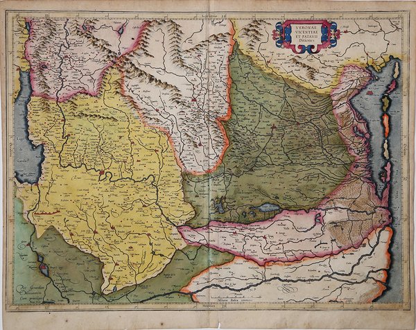 La carta viene preparata da ' Gerard Mercator per il suo ' Italia, Sclavoniae et Graeciae tabula geographicae ' (Duisburg, 1589) che comprende un frontespizio allegorico e 22 carte geografiche della penisola, dei Balcani e della Grecia. Successivamente le carte sono ristampate nell’Atlantis Pars Altera ' (1595) ' pubblicato postumo alla morte del Mercatore, dallo stampatore di Duisburg ' Albert Buys, sotto la supervisione del figlio Rumold Mercator. Composto da sei parti – pubblicate separatamente tra il 1589 e il 1594 – comprende 107 mappe, tutte tranne la carta del mondo di Rumold, firmate da Gerard Mercator. Le lastre vennero poi acquistate da Jodocus Hondius, che tra il 1606 e il 1630 le utilizzò per il suo ' Atlas Sive Cosmographicae Meditationes de Fabrica Mundi, integrandole ed aggiornandole con proprie “nuove” carte. Delle mappe di Mercator sono note anche ristampe curate da Johannes Janssonius. Le edizioni Hondius e Janssonius ebbero un grande successo commerciale e furono stampate in più lingue, con il testo al verso della carta in latino, francese, tedesco e olandese. La carta è incisa con i connotati tipici dell'opera mercatoriana. Le montagne sono allineate in un concetto di area montuosa, non per indicare vere catene o valli, ed hanno una struttura con qualche differenza nella dimensione, ma simile per quanto riguarda la forma, con pendici verticali e cime piatte. Le città sono mostrate attraverso castelli più o meno grandi caratterizzati da tetti slanciati ed aguzzi, simili a cappelli di mago. ' ESEMPLARE DALLA PRIMA EDIZIONE DI ' ATLANTIS PARS ALTERA. ' Incisione in rame, in buono stato di conservazione. Bibliografia cfr. Koeman II Me 11 e Koeman II Me 13A, 1595); Van der Krogt 1:002; J. Keuning, ' The History of an Atlas, in “Imago Mundi” IV (1947) pp. 37-43; ' World Encompassed ' p. 134. The map is prepared by Gerard Mercator for his ' Italia, Sclavoniae et Graeciae tabula geographicae ' (Duisburg, 1589), which includes an allegorical frontispiece and 22 maps of Italy, the Balkans and Greece. Later, the maps are reprinted in the ' Atlantis Pars Altera ' (1595) published posthumously after the death of Mercator, by the Duisburg printer Albert Buys, under the supervision of his son Rumold Mercator. Composed of six parts - published separately between 1589 and 1594 - it includes 107 maps, all except Rumold's map of the world, made by Gerard Mercator. The plates were then purchased by Jodocus Hondius, who between 1606 and 1630 used them for his ' Atlas Sive Cosmographicae Meditationes de Fabrica Mundi, ' integrating and updating them with his own "new" maps. Of Mercator's maps are also known reprints edited by Johannes Janssonius. The Hondius and Janssonius editions had a great commercial success and were printed in several languages, with the text on the back of the map in Latin, French, German and Dutch. The map is engraved with the typical connotations of Mercatorian work. The mountains are aligned in a mountainous area concept, not to indicate true chains or valleys, and have a structure with some differences in size, but similar in shape, with vertical slopes and flat tops. The cities are shown through more or less large castles characterized by slender and pointed roofs, similar to wizard hats. Copper engraving, in good condition. Bibliografia cfr. Koeman II Me 11 e Koeman II Me 13A, 1595); Van der Krogt 1:002; J. Keuning, ' The History of an Atlas, in “Imago Mundi” IV (1947) pp. 37-43; ' World Encompassed ' p. 134 Cfr.