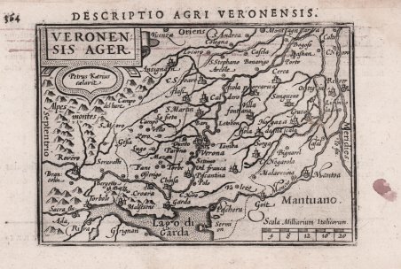 Rara carta geografica per la prima volta pubblicata nel "Caert-thresoor" di Barent Langenes del 1598, quii nella successiva ristampa con testo latino del 1600, denominata "Tabularum Geographicarum Contractarum" ed edita da Cornelis Claesz. Alla fine del XVI secolo il più famoso e commercializzato atlante “tascabile” era l"’Epitome" di Abraham Ortelius. Nel 1598 gli editori Barent Langenes e Cornelis Claesz diedero alle stampe una raccolta di superiore qualità. Le lastre sono affidate ad abili intagliatori quali Pieter Kaerius e Jodocus Hondius. Successivamnet il Claesz incaricò Petrus Bertius di scrivere il testo del "Tabularum Geographicarum Contractarum", atlante tascabile per la prima volta pubblicato nel 1600 con testo latino. Incisione in rame, in ottimo stato di conservazione. Rara. A superior rival to the pocket Ortelius atlas appeared about 1598, under the imprint of Barent Langenes and Cornelis Claesz. Claesz also published the "Tabularum Geographicarum Contractarum", edition with texy by Petrus Bertius, in 1600. lCopperplate, in very good conditions. Engraved by Pieter Kaerius. Rare. Cfr. King, Miniature Antique Maps, p. 81.