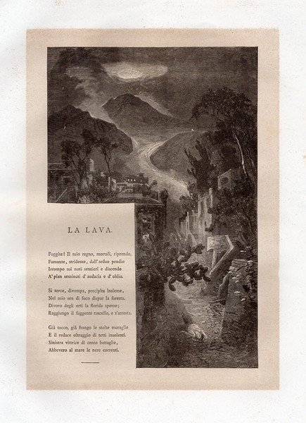VESUVIO - La Lava. suggestiva incisione raffigurante il Vesuvio in eruzione, con un sonetto incluso.