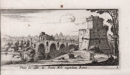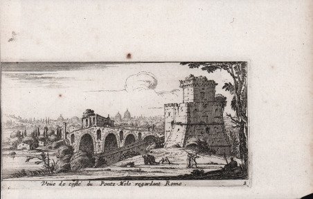Veduta tratta dalla serie ' Veue de plusieurs édifices tant de Rome que des environs. “Suite de 13 pièces numérotées au bas, à droite, titre compris. On trouve aussi des copies très bien faites de plusieurs de ces pièces; elles sont en sens inverses des originaux. (cfr. Faucheux, Catalogue raisonné de toutes les estampes qui forment l'oeuvre d'Israel Silvestre). Il Silvestre, incisore e disegnatore, nasce a Nancy nel 1621. Come era consuetudine all'epoca, fece diversi viaggi in Italia per copiare i vecchi maestri e per migliorare le sue abilità con i più grandi maestri. Faucheux fissa le date di questi viaggi, il primo prima del 1640 (Israel non aveva ancora 20 anni), il secondo dal 1643 al 1644 e l'ultimo intorno al 1653. Israel portò con sé molte vedute dell'Italia, quasi tutte incise. Fino al 1659, fece altri viaggi in Francia e in Lorena, da cui trasse molti disegni e incisioni. Il suo stile fu, all'inizio, piuttosto sciolto, ma dal 1643 in poi divenne più raffinato e delicato, acquisendo accuratezza e precisione senza essere asciutto, risultando a volte simile a quello di Jacques Callot o di Stefano della Bella, con i quali ebbe rapporti di amicizia attraverso il suo zio materno e mentore, l’editore Israël Henriet. Accanto alle testimonianze per la Roma antica mostrò ben presto un grandissimo interesse per la città "moderna", divenendo uno dei precursori del vedutismo - non solo nel campo incisorio - anticipando artisti come Lievin Cruyl e Gaspar van Wittel. È praticamente impossibile fare un inventario completo delle opere di Israël Silvestre, tanto era prolifico l'artista. Ha lasciato numerosi disegni e più di mille incisioni. Tra le sue opere più belle, possiamo tuttavia menzionare le numerose e complesse “piccole” suite (composte da poche tavole) sulle piazze, le chiese e le antichità di Roma. Acquaforte, in ottimo stato di conservazione. Bibliografia L. E. Faucheux, Catalogue raisonné de toutes les estampes qui forment l'oeuvre d'Israel Silvestre: précédé d'une notice sur sa vie (1857), n. 7.2; F. Baré, Israël Silvestre et sa famille, suivi du catalogue de son oeuvre (1885), n. 857. View taken from the series ' Veue de plusieurs édifices tant de Rome que des environs. “Suite de 13 pièces numérotées au bas, à droite, titre compris. On trouve aussi des copies très bien faites de plusieurs de ces pièces; elles sont en sens inverses des originaux. (cfr. Faucheux, Catalogue raisonné de toutes les estampes qui forment l'oeuvre d'Israel Silvestre). Silvestre, engraver and draftsman, was born in Nancy in 1621. As was customary at the time, he made several trips to Italy to copy the old masters and to improve his skills with the greatest masters. Faucheux fixes the dates of these trips, the first before 1640 (Israel was not yet 20 years old), the second from 1643 to 1644 and the last around 1653. Israel brought with him many views of Italy, almost all of them engraved. Until 1659, he made other trips to France and Lorraine, from which he took many drawings and engravings. His style was, at the beginning, rather loose, but from 1643 onwards became more refined and delicate, acquiring accuracy and precision without being dry, resulting sometimes similar to that of Jacques Callot or Stefano della Bella, with whom he had friendly relations through his maternal uncle and mentor, the publisher Israël Henriet. Alongside the testimonies to ancient Rome, he soon showed great interest in the "modern" city, becoming one of the precursors of vedutism - not only in the field of engraving - anticipating artists such as Lievin Cruyl and Gaspar van Wittel. It is quite impossible here to make a complete inventory of Israël Silvestre's works, so prolific was the artist. He left numerous drawings and more than a thousand engravings. However, among his most beautiful works, we can mention the many complex "small" suites (composed of a few plates) on the squares, churches and antiquities of Rome. Etching, in excellent condition. Bibliografia L. E. Faucheux, Catalogue raisonné de toutes les estampes qui forment l'oeuvre d'Israel Silvestre: précédé d'une notice sur sa vie (1857), n. 7.2; F. Baré, Israël Silvestre et sa famille, suivi du catalogue de son oeuvre (1885), n. 857. Cfr.