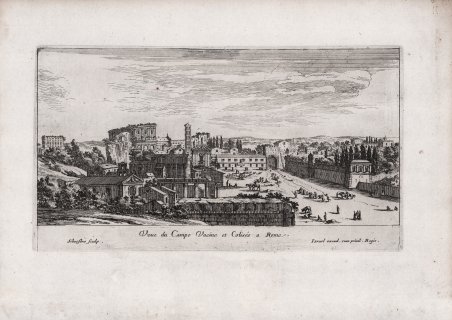 Veduta tratta dalla serie ' Livre de diverses Perspectives, et Paisages faits sur le naturel, mis en lumière par Israël. “Suite de 8 pièces et le titre, sans numéros”. (cfr. Faucheux, Catalogue raisonné de toutes les estampes qui forment l'oeuvre d'Israel Silvestre). Il Silvestre, incisore e disegnatore, nasce a Nancy nel 1621. Come era consuetudine all'epoca, fece diversi viaggi in Italia per copiare i vecchi maestri e per migliorare le sue abilità con i più grandi maestri. Faucheux fissa le date di questi viaggi, il primo prima del 1640 (Israel non aveva ancora 20 anni), il secondo dal 1643 al 1644 e l'ultimo intorno al 1653. Israel portò con sé molte vedute dell'Italia, quasi tutte incise. Fino al 1659, fece altri viaggi in Francia e in Lorena, da cui trasse molti disegni e incisioni. Il suo stile fu, all'inizio, piuttosto sciolto, ma dal 1643 in poi divenne più raffinato e delicato, acquisendo accuratezza e precisione senza essere asciutto, risultando a volte simile a quello di Jacques Callot o di Stefano della Bella, con i quali ebbe rapporti di amicizia attraverso il suo zio materno e mentore, l’editore Israël Henriet. Accanto alle testimonianze per la Roma antica mostrò ben presto un grandissimo interesse per la città "moderna", divenendo uno dei precursori del vedutismo - non solo nel campo incisorio - anticipando artisti come Lievin Cruyl e Gaspar van Wittel. È praticamente impossibile fare un inventario completo delle opere di Israël Silvestre, tanto era prolifico l'artista. Ha lasciato numerosi disegni e più di mille incisioni. Tra le sue opere più belle, possiamo tuttavia menzionare le numerose e complesse “piccole” suite (composte da poche tavole) sulle piazze, le chiese e le antichità di Roma. Acquaforte, in ottimo stato di conservazione. Bibliografia L. E. Faucheux, Catalogue raisonné de toutes les estampes qui forment l'oeuvre d'Israel Silvestre: précédé d'une notice sur sa vie (1857), n. 17.1; F. Baré, Israël Silvestre et sa famille, suivi du catalogue de son oeuvre (1885), n. 914. View taken from the series ' Livre de diverses Perspectives, et Paisages faits sur le naturel, mis en lumière par Israël. “Suite de 8 pièces et le titre, sans numéros”. (cfr. Faucheux, Catalogue raisonné de toutes les estampes qui forment l'oeuvre d'Israel Silvestre). Silvestre, engraver and draftsman, was born in Nancy in 1621. As was customary at the time, he made several trips to Italy to copy the old masters and to improve his skills with the greatest masters. Faucheux fixes the dates of these trips, the first before 1640 (Israel was not yet 20 years old), the second from 1643 to 1644 and the last around 1653. Israel brought with him many views of Italy, almost all of them engraved. Until 1659, he made other trips to France and Lorraine, from which he took many drawings and engravings. His style was, at the beginning, rather loose, but from 1643 onwards became more refined and delicate, acquiring accuracy and precision without being dry, resulting sometimes similar to that of Jacques Callot or Stefano della Bella, with whom he had friendly relations through his maternal uncle and mentor, the publisher Israël Henriet. Alongside the testimonies to ancient Rome, he soon showed great interest in the "modern" city, becoming one of the precursors of vedutism - not only in the field of engraving - anticipating artists such as Lievin Cruyl and Gaspar van Wittel. It is quite impossible here to make a complete inventory of Israël Silvestre's works, so prolific was the artist. He left numerous drawings and more than a thousand engravings. However, among his most beautiful works, we can mention the many complex "small" suites (composed of a few plates) on the squares, churches and antiquities of Rome. Etching, in excellent condition. Bibliografia L. E. Faucheux, Catalogue raisonné de toutes les estampes qui forment l'oeuvre d'Israel Silvestre: précédé d'une notice sur sa vie (1857), n. 17.1; F. Baré, Israël Silvestre et sa famille, suivi du catalogue de son oeuvre (1885), n. 914. Cfr.