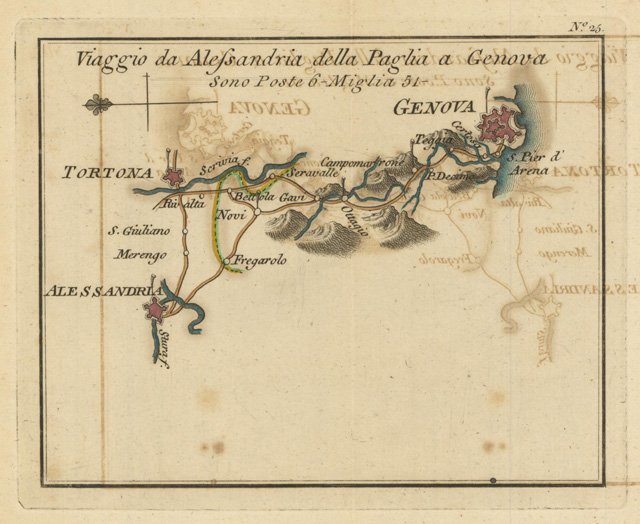 Viaggio da Alessandria della Paglia a Genova. Sono Poste 6 - Miglia 51
