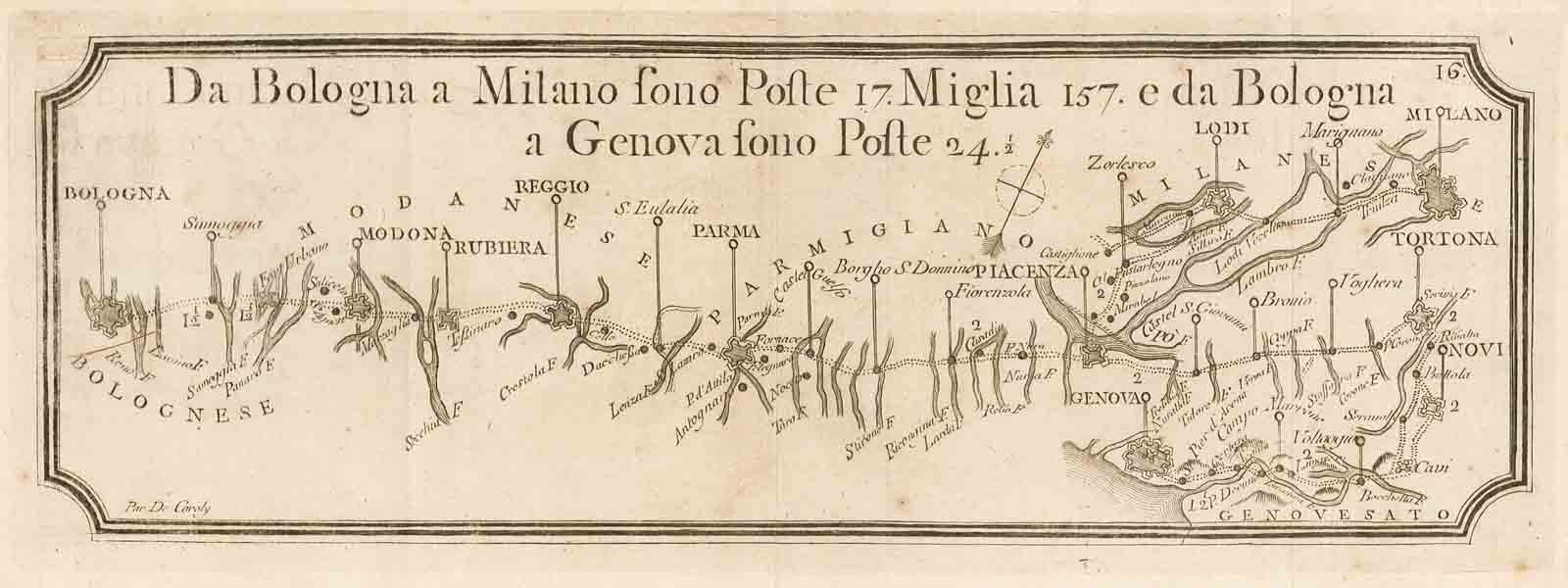 Viaggio da Bologna a Milano sono Poste 17 Miglia 157 e da Bologna a Genova / Sono Poste 24-1/2