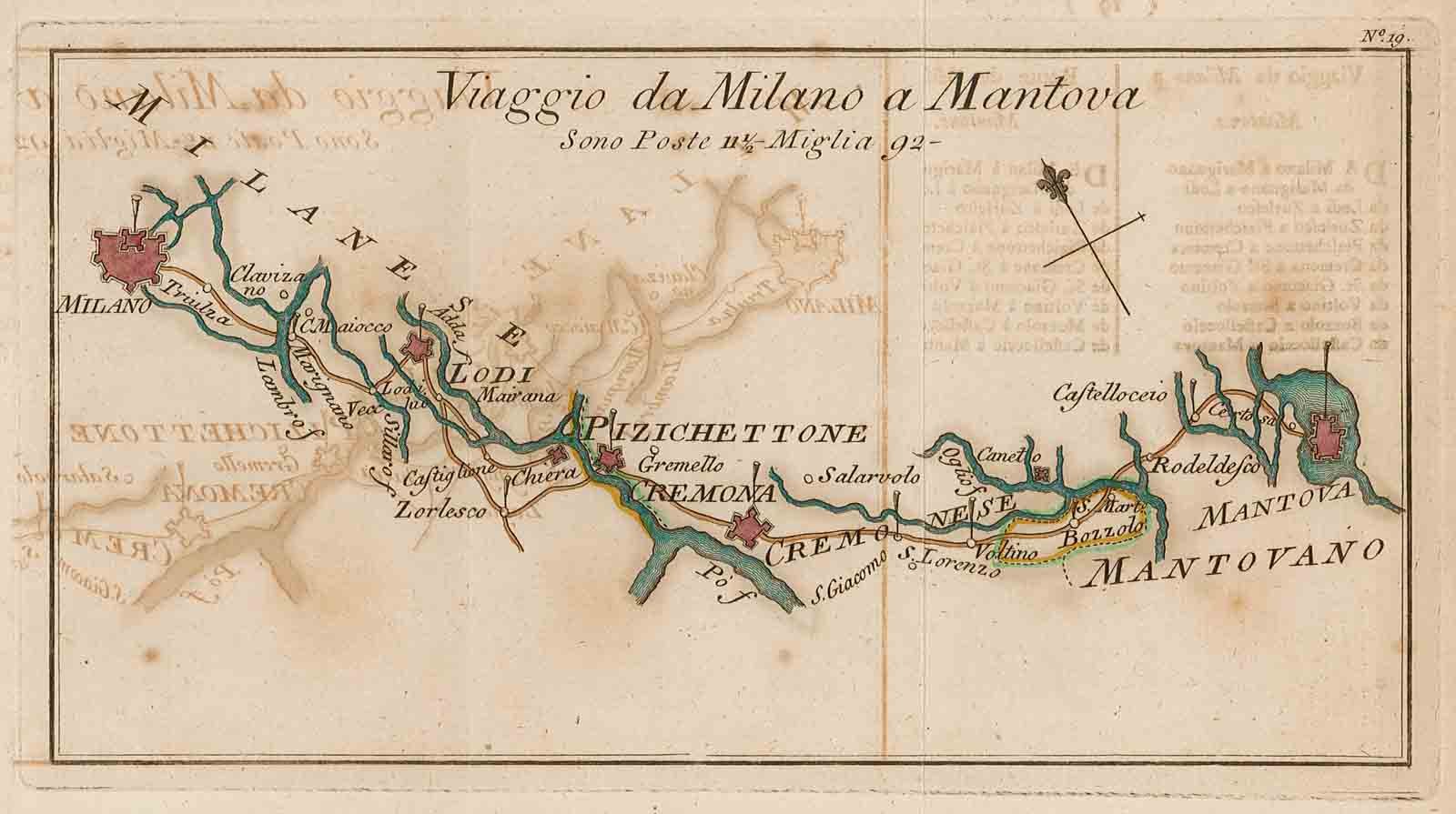 Viaggio da Milano a Mantova. Sono Poste 11 1/2 - Miglia 92