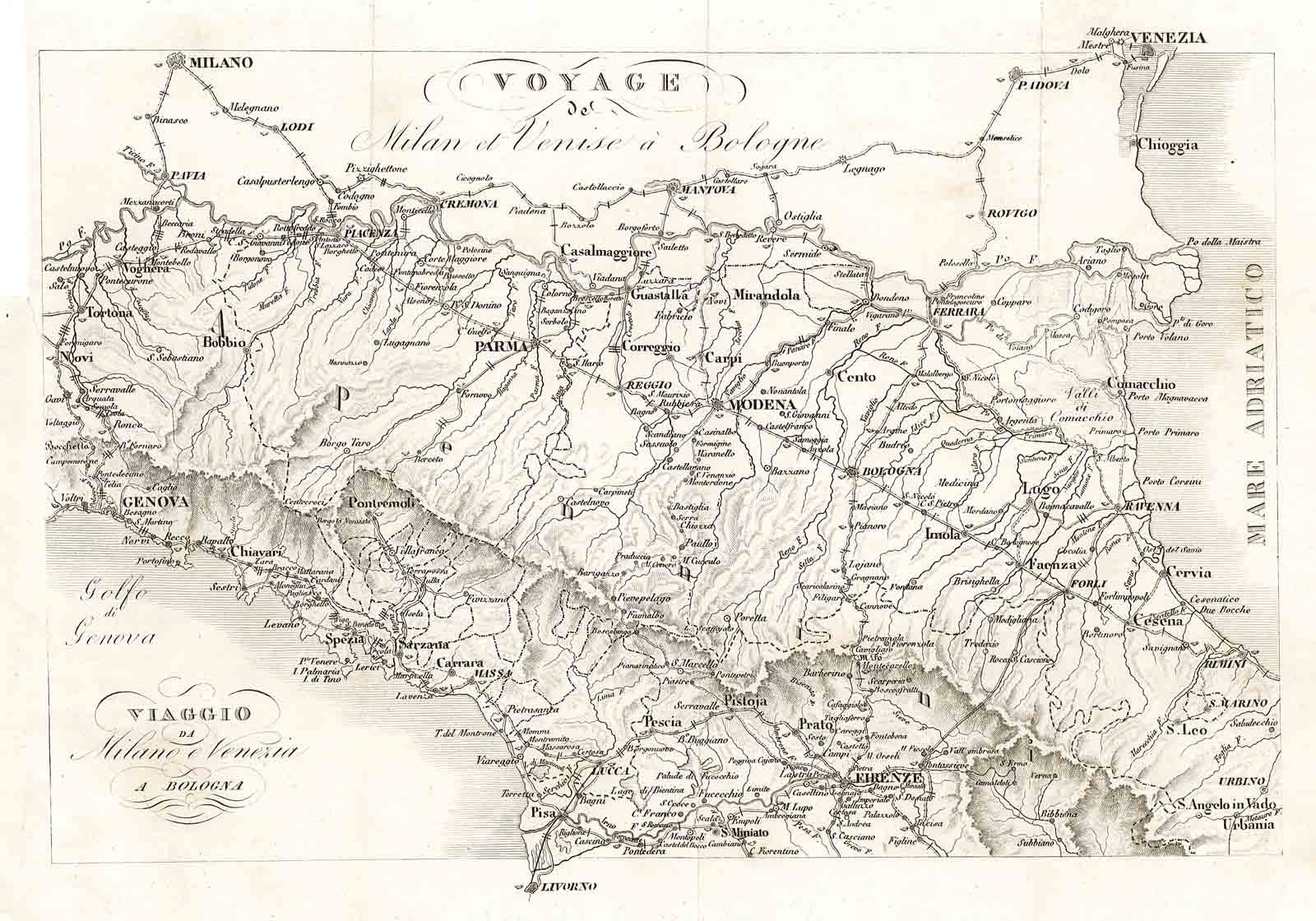 Carta geografica dell'Emilia R. e parte della Liguria e della Toscana. Pieghe editoriali