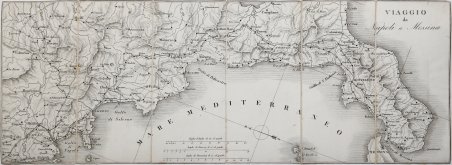 Carta itineraria di Vittorio Angeli, realizzata per la Nuovissima Guida dei Viaggiatori in Italia della tipografia Artaria di Milano. “[…] presente fin dalla prima edizione nella Nuovissima Guida dei Viaggiatori in Italia, pubblicata a Milano da Epimaco e Pasquale Artaria nel 1831. La firma di Angeli, sotto il titolo in francese, si trova solo in questa edizione, e non compare più in quelle successive, anche se la carta rimane sempre la stessa. Tuttavia, a partire dalla terza edizione, oltre al titolo in francese, compare quello in italiano nell'angolo in basso a sinistra. Se poi si vuol essere scrupolosi, lo stesso esemplare è contenuto nella Nuovissima Guida dei Viaggiatori in Italia e nelle principali Parti d'Europa, data alle stampe da Luigi Zucoli nel 1840, sempre a Milano, e ripetuta nel 1844 e 1847. Insomma, una immagine molto usata nelle numerose guide ottocentesche di Artaria, e non solo, che offre una sintesi molto precisa della viabilità del Centro Italia, ricomponendo in un solo insieme le "strisce" itinerarie che avevano contrassegnato gli esemplari del Tiroli, del Cassini e soprattutto del Vallardi, già visti alcune pagine indietro. Proprio tra Artaria e Vallardi si apre, su questo specifico prodotto, un confronto editoriale che durerà più di mezzo secolo, dove le edizioni dell'uno inseguono a ritmo incalzante quelle dell'altro. Una concorrenza così pressante che sottintende una richiesta molto sostenuta, sia dal viaggiatore italiano, ma soprattutto da quello transalpino, senza contare che altri intellettuali turisti europei erano in grado di comprendere entrambe le lingue nelle quali le due guide venivano stampate. Il susseguirsi di ristampe e nuove edizioni aggiornate, al di là dell'aspetto commerciale, è indicativo di quanto fosse numeroso il target di riferimento, ossia di coloro che per ragioni di vario interesse venivano in Italia, incuranti o magari interessati ai mori irredentisti e risorgimentali che, a partire dagli anni 20 dell'Ottocento, si protrassero fino all'Unità d'Italia. C'è da dire che il nostro Paese non era poi, sotto questo aspetto, un'eccezione nel resto d'Europa. Commentando la carta di Bouchard del 1799 e quella di Mollo del 1829, ci siamo brevemente soffermati sul ramo degli Artaria, emigrati a Vienna dalla Brianza, dando luogo alla rinomata impresa editoriale, famosa per le sue pubblicazioni cartografiche e musicali. Qui proviamo a offrire un altrettanto sintetico cenno sul ramo milanese dello stesso casato, il cui fondatore Ferdinando (Blevio 1781-1843) si reca giovanissimo a Vienna, presso la stamperia dei cugini Carlo e Francesco I, per apprendere le nozioni fondamentali di quel mestiere. Rientrato in Italia all'inizio dell'Ottocento, avvia insieme al trentino Giuseppe de Werz, una sua produzione editoriale e di stampa musicale, uti- lizzando il sistema litografico che Werz aveva importato dalla Germania. L'officina litografica si aggiudica commesse dal Ministero della Guerra del Regno Italico, e più tardi, viene assorbita dalla I. R. Stamperia, per la quale lavorerà fino al 1818. Nel 1828 il fondatore cede l'azienda ai figli Epimaco e Pasquale, che pure erano stati impegnati nella impresa paterna, riservandosi solo il commercio meno importante della musica manoscritta. I due fratelli cercano di incrementare il volume di attività, acquistando l'esclusiva su opere liriche e soprattutto dando alle stampe guide di viaggio. Passa meno di un decennio quando, a seguito di una crisi finanziaria, Epimaco si ritira e la ditta assume la ragione di "Ferdinando Artaria e Figlio". Alla morte di Ferdinando, Epimaco viene privato di ogni diritto e Pasquale rimane unico titolare. Nel 1852 questi cede l'insieme editoriale al cognato Ferdinando Sacchi, riservandosi la proprietà della Guida dei Viaggiatori in Italia che sicuramente continuava ad avere un buon valore di mercato. Il Sacchi mantenne la denominazione "Ferdinando Artaria e Figlio" fino al 1872, modificandola successi. Carta itineraria di Vittorio Angeli, realizzata per la Nuovissima Guida dei Viaggiatori in Italia della tipografia Artaria di Milano. “[…] presente fin dalla prima edizione nella Nuovissima Guida dei Viaggiatori in Italia, pubblicata a Milano da Epimaco e Pasquale Artaria nel 1831. La firma di Angeli, sotto il titolo in francese, si trova solo in questa edizione, e non compare più in quelle successive, anche se la carta rimane sempre la stessa. Tuttavia, a partire dalla terza edizione, oltre al titolo in francese, compare quello in italiano nell'angolo in basso a sinistra. Se poi si vuol essere scrupolosi, lo stesso esemplare è contenuto nella Nuovissima Guida dei Viaggiatori in Italia e nelle principali Parti d'Europa, data alle stampe da Luigi Zucoli nel 1840, sempre a Milano, e ripetuta nel 1844 e 1847. Insomma, una immagine molto usata nelle numerose guide ottocentesche di Artaria, e non solo, che offre una sintesi molto precisa della viabilità del Centro Italia, ricomponendo in un solo insieme le "strisce" itinerarie che avevano contrassegnato gli esemplari del Tiroli, del Cassini e soprattutto del Vallardi, già visti alcune pagine indietro. Proprio tra Artaria e Vallardi si apre, su questo specifico prodotto, un confronto editoriale che durerà più di mezzo secolo, dove le edizioni dell'uno inseguono a ritmo incalzante quelle dell'altro. Una concorrenza così pressante che sottintende una richiesta molto sostenuta, sia dal viaggiatore italiano, ma soprattutto da quello transalpino, senza contare che altri intellettuali turisti europei erano in grado di comprendere entrambe le lingue nelle quali le due guide venivano stampate. Il susseguirsi di ristampe e nuove edizioni aggiornate, al di là dell'aspetto commerciale, è indicativo di quanto fosse numeroso il target di riferimento, ossia di coloro che per ragioni di vario interesse venivano in Italia, incuranti o magari interessati ai mori irredentisti e risorgimentali che, a partire dagli anni 20 dell'Ott