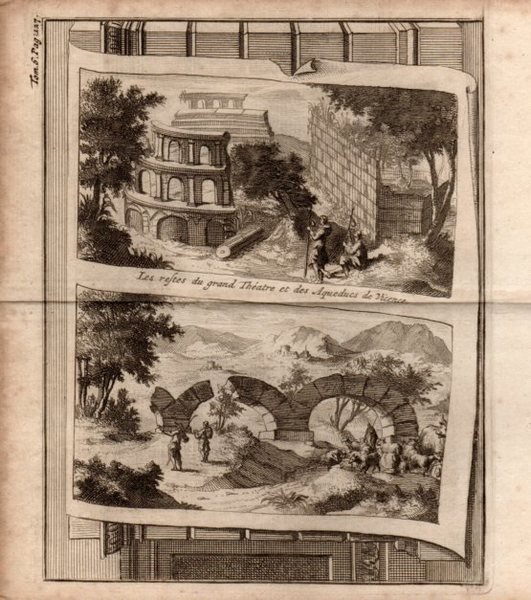 VICENZA - "Les restes du grand Théatre et des Acquaducs de Vicence". Due vedutine su unica tavola.