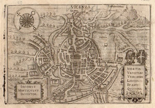 Incisione in rame, f. 18,5×13 cm. ca. In: BERTELLI, Pietro – Teatro delle città… Vicenza