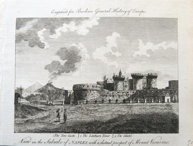 View in the Suburbs of Naples with a distant prospect of Mount Vesuvius. 1. The New Castle. 2. The Lanthern Tower 3. The Citadel.