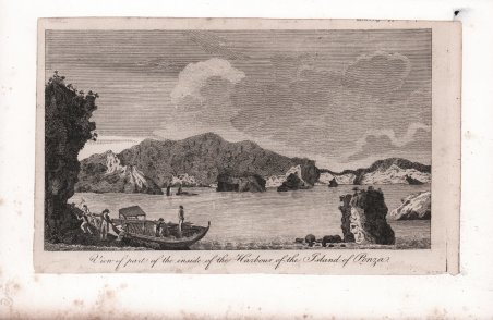 Veduta paesaggistica del porto dell'isola di Ponza. La scena mostra la geologia locale causata dall'azione vulcanica, in particolare le colate laviche solidificate, osservate dalla feluca di Sir William Hamilton (1731-1803). Il gruppo comprende Hamilton che dirige l'artista e operai con martelli che prelevano campioni di roccia (in basso a sinistra). La tavola è tratta dal libro "Some particulars of the present state of Mount Vesuvius; with the account of a journey into the province of Abruzzo, and a voyage to the Isle of Ponza", di Sir William Hamilton, Philosophical Transactions of the Royal Society, vol.76 (1786), pp. 365-381. La lastra è incisa su disegno di Francesco Progenie. Acquaforte, stampata su carta vergata coeva, buono stato di conservazione. Rara Landscape view of the harbour on the island of Ponza in the Tyrrenian Sea, Italy. The scene shows local geology caused by volcanic action, notably solidified lava flows, being viewed by the felucca party of Sir William Hamilton (1731-1803). This group includes Hamilton directing the artist and workmen with hammers taking specimens of rock (lower left). Plate 11 from the book “Some particulars of the present state of Mount Vesuvius; with the account of a journey into the province of Abruzzo, and a voyage to the Isle of Ponza”, by Sir William Hamilton, Philosophical Transactions of the Royal Society, vol.76 (1786), pp.365-381. The plate is engraved after a drawing by Francesco Progenie. Copperplate, printed on contemporary laid paper, good condition. Rare. Cfr.