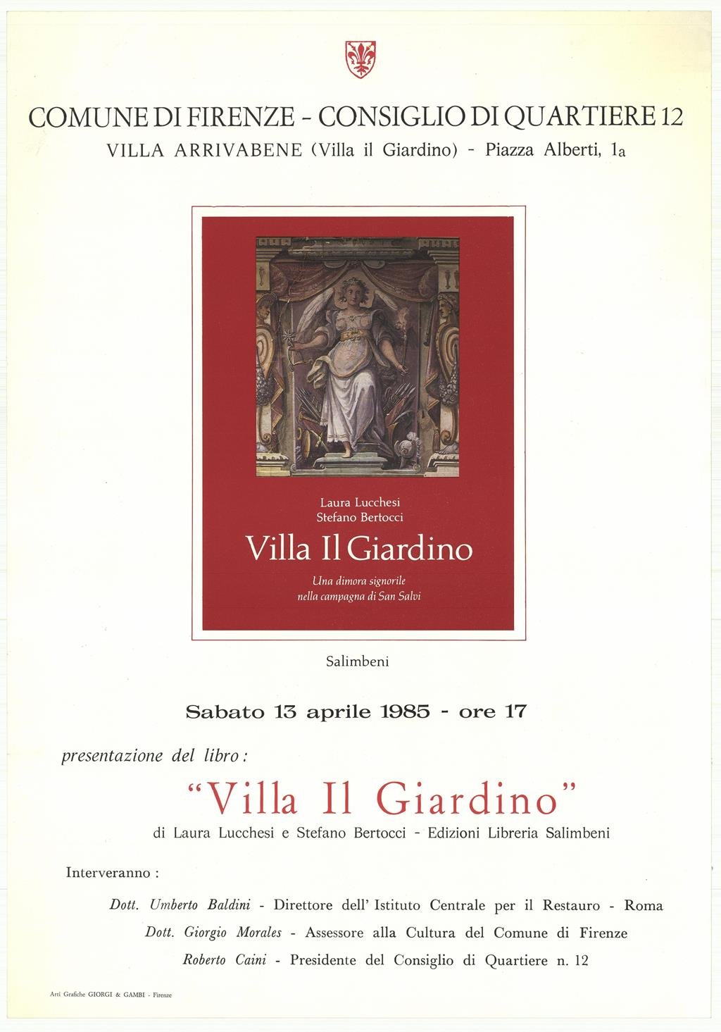 Poster originale. Locandina. Presentazione del libro di Laura Lucchesi e Stefano Bertocci, edito da Libreria Salimbeni. Buone condizioni