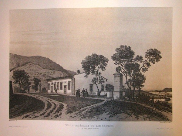 VILLA IMPERIALE DE SAN-MARTINO (Isola d'Elba). Vue prise de la pelouse, état actuel. Riproduzione tratta dall'album "L'Ile d'Elbe" di André Durand.