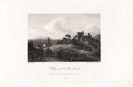 Veduta tratta da ' Select views in Italy, with topographical and historical descriptions in English and French. Vol. I. (II.) London (Place), printed by T. Chapman, for John Smith, William Byrne, and John Emes, 1792. (1796) di Smith, John Warwick (1749-1831). Tutte le lastre sono firmate come disegnate da J. Smith - in tre casi come disegni di Wm. ' Cowper, Sir Rd. C. Hoare o T. Jones. Sono incise da T. Medland, Willm. Byrne, J. Schuman, B.T. Pouncy, J. Emes, J. Landseer, J. Roffe, Jas. ' Sparrow, W. Watts, J. Shirt o W. Lowry. Secondo un prospetto datato 1° dicembre 1791, l'opera venne pubblicata a dispense, in 10 numeri, ed è dedicata da John Smith alla Regina [Charlotte]. John "Warwick" Smith (26 luglio 1749 - 22 marzo 1831) è stato un pittore e illustratore britannico di paesaggi ad acquerello. Smith nacque a Irthington, vicino a Carlisle, nel Cumberland, figlio di un giardiniere della famiglia Gilpin, e fu educato a St. Bees. Il fortunato legame sociale gli permise di studiare arte sotto la guida del pittore di animali Sawrey Gilpin. Diventato noto come abile disegnatore topografico, fu impiegato per le ' Select Views in ' Great Britain di Samuel Middiman e ottenne il patrocinio di George Greville, secondo conte di Warwick, che gli permise di viaggiare in Italia tra il 1776 e il 1781. Acquaforte, alcune ossidazioni, per il resto in ottimo stato di conservazione. View taken from the ' Select views in Italy, with topographical and historical descriptions in English and French. Vol. I. (II.) London (Place), printed by T. Chapman, for John Smith, William Byrne, and John Emes, 1792. (1796) by Smith, John Warwick (1749--1831). All plates are signed as drawn by J. Smith - in three cases as after sketches by Wm. Cowper, Sir Rd. C. Hoare or T. Jones. They are signed as engraved by T. Medland, Willm. Byrne, J. Schuman, B.T. Pouncy, J. Emes, J. Landseer, J. Roffe, Jas. Sparrow, W. Watts, J. Shirt or W. Lowry. According to a prospectus dated 1 December 1791 the work was to be issued in 10 numbers. The work is dedicated by John Smith to the Queen [Charlotte]. John "Warwick" Smith (26 July 1749 – 22 March 1831) was a British watercolour landscape painter and illustrator. Smith was born at Irthington, near Carlisle, Cumberland, the son of a gardener to the Gilpin family, and educated at St. Bees. The fortunate social connection allowed him to study art under the animal painter Sawrey Gilpin. Copperplate, some foxing, otherwise good condition. Cfr.