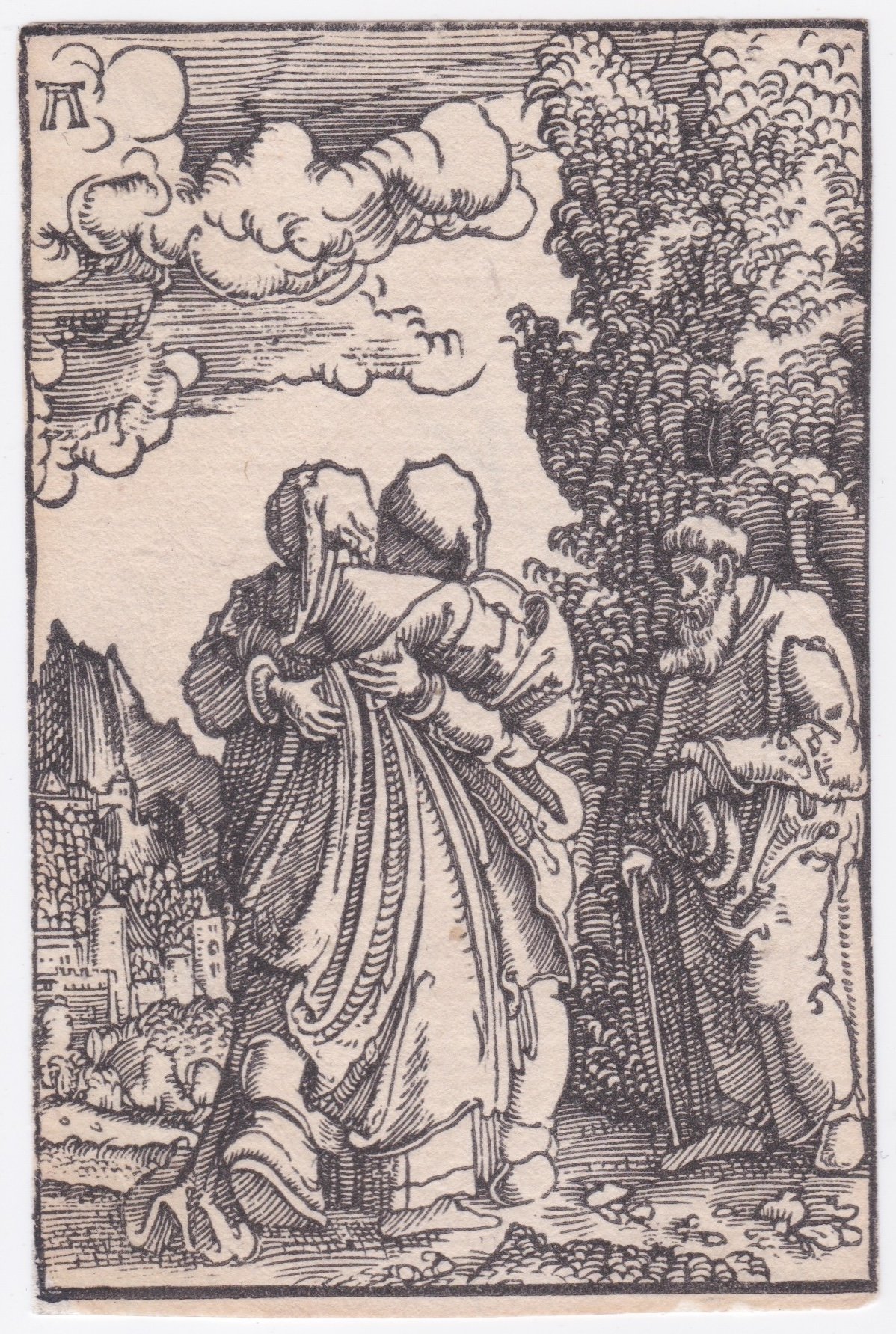 La tavola fa parte della serie di 40 silografie nelle quali vengono rappresentati episodi della Vita e della Passione di Cristo. Si tratta di piccole raffinate composizioni, costruite con estrema chiarezza compositiva e ricchezza di dettagli, inserite in un paesaggio sempre colto da un punto di vista rialzato. Tutte le stampe riportano il monogramma AA. Stato unico. Si conoscono tre edizioni: la prima stampata su un unico foglio, la seconda su fogli singoli e una del 1604 con l'aggiunta di una cornice ornamentale, di un testo e del monogramma di Jacob Lucius.
