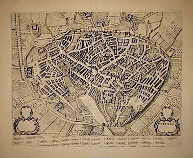 Incisione originale su rame (cm. 53,5x42,5 più ampi margini) tratta dal ‘Theatrum Civitatum et admirandorum Italiae’. Eccellente esemplare. Testo in latino al verso. Prima tiratura cui seguirono due ristampe nel 1704 e nel 1724. Rara.