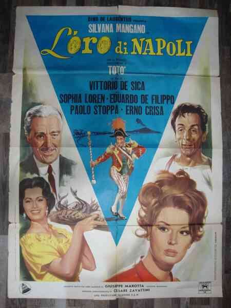 Vittorio De Sica (regista) Silvana Mangano e Totò in "L'oro di Napoli" Dino De Laurentiis Manifesto cinematografica. Con la partecipazione di Sophia Loren, Eduardo De Filippo, Paolo Stoppa e Erno Crisa (49b/56b).